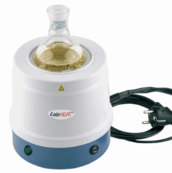 Gehäuseheizhauben Serie KM-M, ohne ReglerLabHEAT®-Heizhauben für Rundkolben. Flexibler Glasseide-Heizkörper in einem kunststoffbeschichtetem, chemikalienbeständigem Metallgehäuse mit eingebauten Netz- und Heizzonenschalter, max. Heizleitertemperatur 450 °C, 1,5 m Netzanschlussleitung mit Schukostecker und Personenschutzschalter.