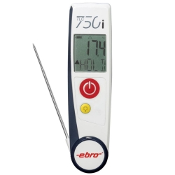 Handliches Infrarotthermometer zur berührungslosen Messung der Oberflächentemperatur oder der Kerntemperatur mit dem einklappbaren Einstechfühler. Ideal für zeitsparende, präzise Temperaturmessungen beim Wareneingang, sowie bei der Lagerung und dem Transport von Waren und Lebensmitteln.